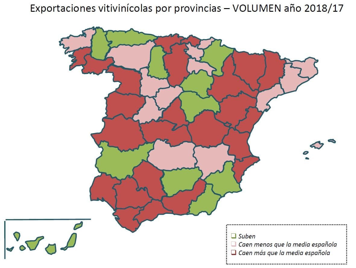 Andalucía, Galicia, Baleares y Canarias, únicas que exportaron menos litros en 2018 que en el año 2000.